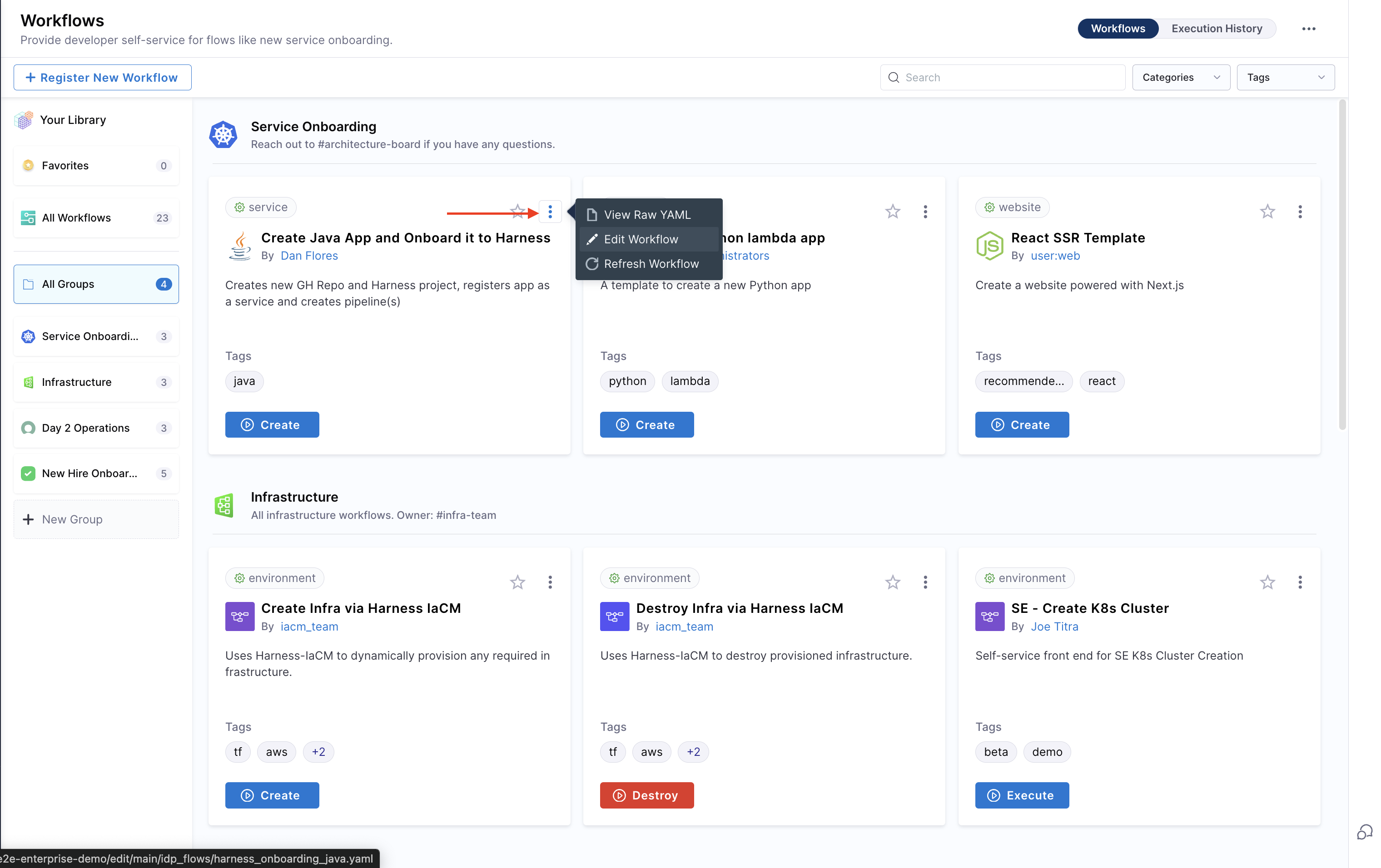 Managing Workflows in Harness IDP