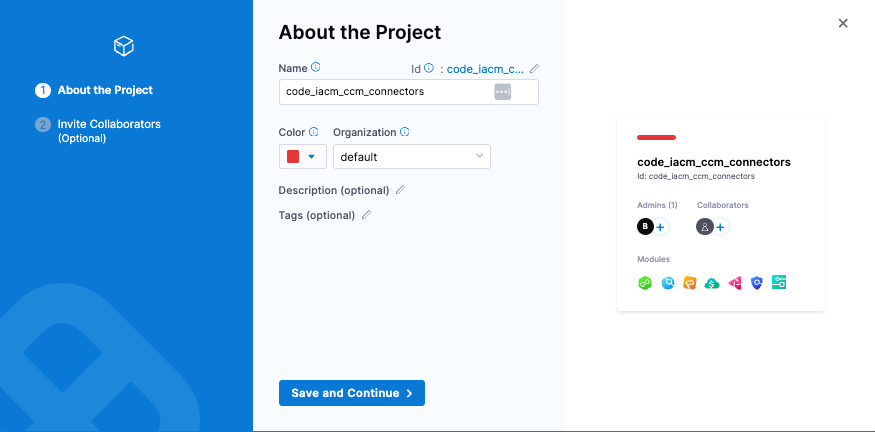 The project will use the Code Repository and IaCM modules.